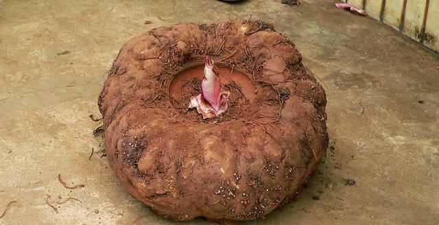 一是块茎扁球形,直径7-20公分,顶部中央稍下凹,暗红褐色。