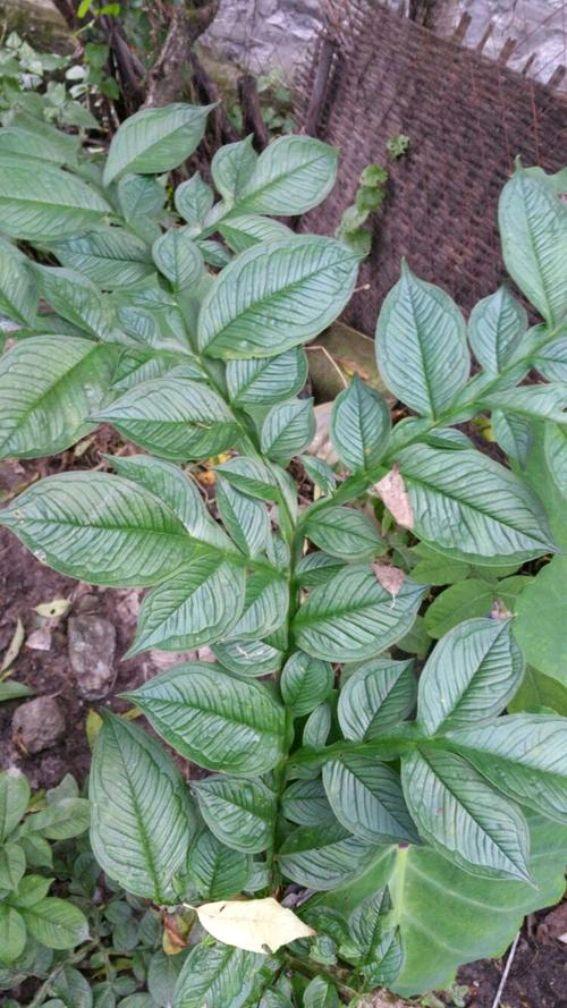 高达1米,叶柄粗肥多汁,光滑绿色,有紫褐色斑点,叶片大,3全裂,裂片长达50公分,裂片再次分裂。