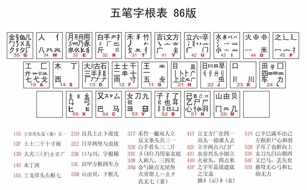 五笔字根表图片(吐血整理) 日期:2023-09-01 17:13:13 编辑:君莫笑 栏目:字根表 浏览:91862次 小编收集整理了大多数的五笔字根表图片【高清】,包括有86、98、新世纪、王码、极品、万能相关的各版本字根图片,今天分享给大家。 86版五笔字根表【标准版】[上] 98版五笔字根表【第二代】[上] 新世版五笔字根表【第三代】[上] 王码五笔字根表 [上] 极品五笔字根表 [上] 万能五笔字根表 [上] 上一篇:王码五笔字根表 下一篇:五笔字根表壁纸(xp经典护眼) 内容版权声明:除非注明,否则皆为本站原创文章。 转载注明出处:https://www.my103.com/wb/165205922369.html 相关推荐 五笔字根表(86版)高清五笔字根表(98版)五笔字根表(新世纪版)想学五笔的朋友,请勿让“背字根表”给吓跑了极品五笔字根表(图)五笔字根表口诀五笔字根表壁纸(xp经典护眼)万能五笔字根表(图)王码五笔字根表